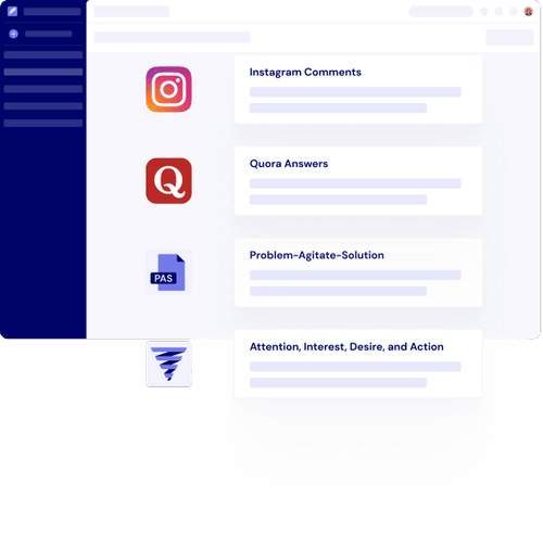 • Create Facebook copy that hooks readers with marketing models like AIDA and PAS.