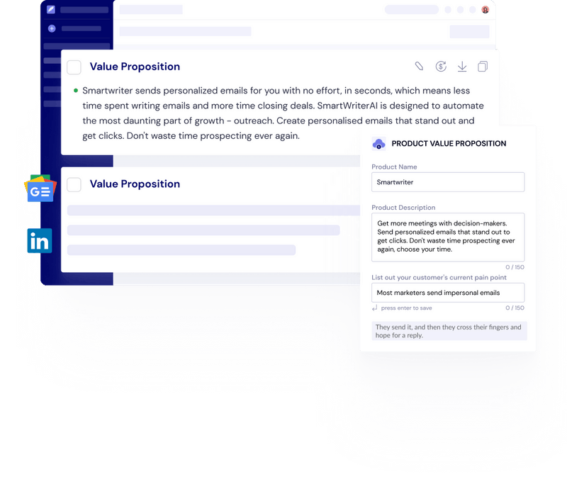 • Create enriched, tailored outreach emails in seconds that would take an entire team.
