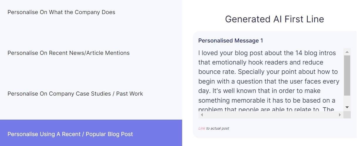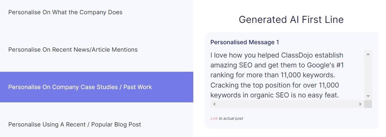 • Let AI read full blogs in 2 seconds and write tailored backlink outreach messages.